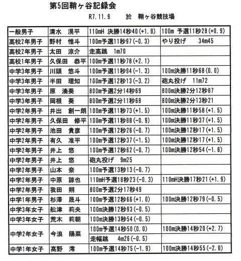 男子低学年50m 8位 奈良井 怜③ 9.61 予選 杉本渉③ 10.1 工藤敬人② 10.60 吉田一翔2 10.06 内丸結太② 10.69 中村新① 12.68 石田蒼真① 13.48